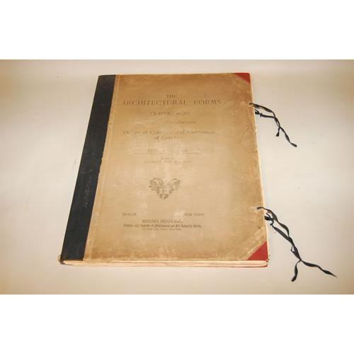 Uhde, Constantin. The Architectural Forms of the Classic Ages Giving Special Attention to the Orders of Columns and Formations of Cornices. Berlin: Bruno Hessling, Elephant Folio - over 15" - 23" tall. Hard Cover. Ex-Library. Good Condition. With 70 b/w plates, as called for, unbound as issued. English text by Moritz Wm. Boehm. In original portfolio with ties, library cloth backstrip. Plates show edge chips, portfolio covers darkened.