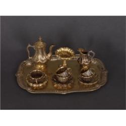 Uhren - Schmuck - Miniaturen : Puppenservice. Messing geprägt und versilbert. Neun Teile. Bestehend