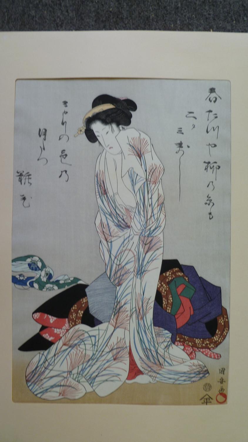 KUNIYASU (Painter), Susums Ito (Engraver). "Early Spring". Fine impression of this original woodblock by a friend of Kunisada. 14-1/4"x9-1/2" + Mat.