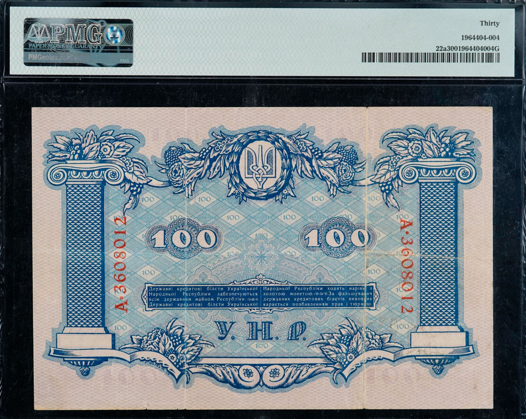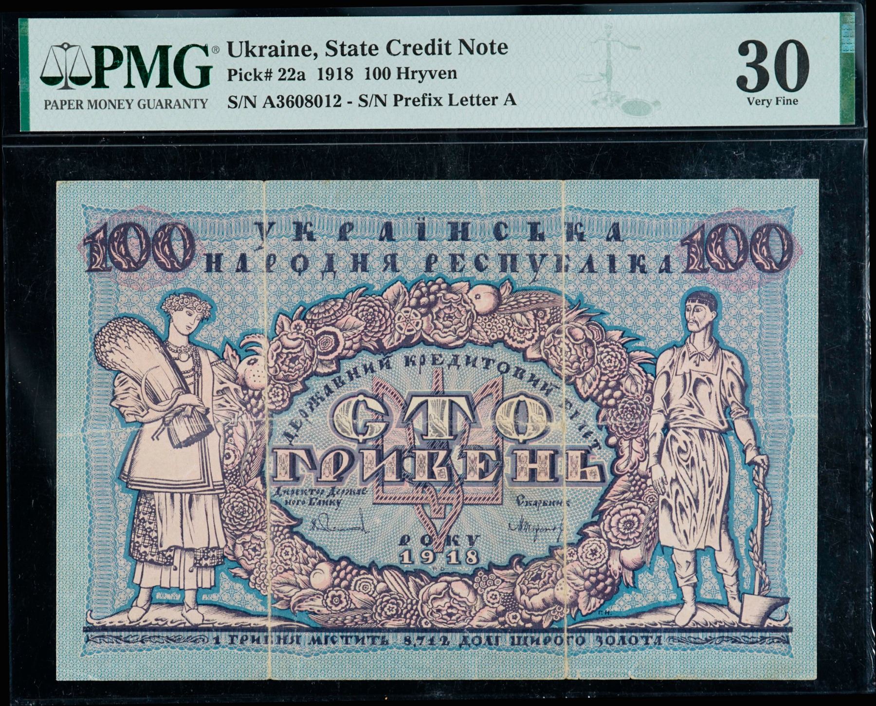 Ukraine; 1918 100 Hryven Pick #22a #A3608012 - Prefix Letter A, PMG VF30