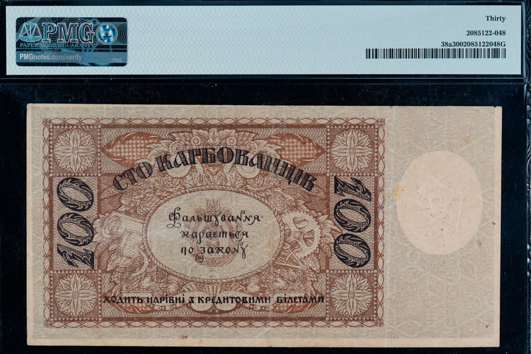 Ukraine; 1918 100 Karbovantsiv Pick #38a #AA017521 - Wmk: Stars PMG VF30