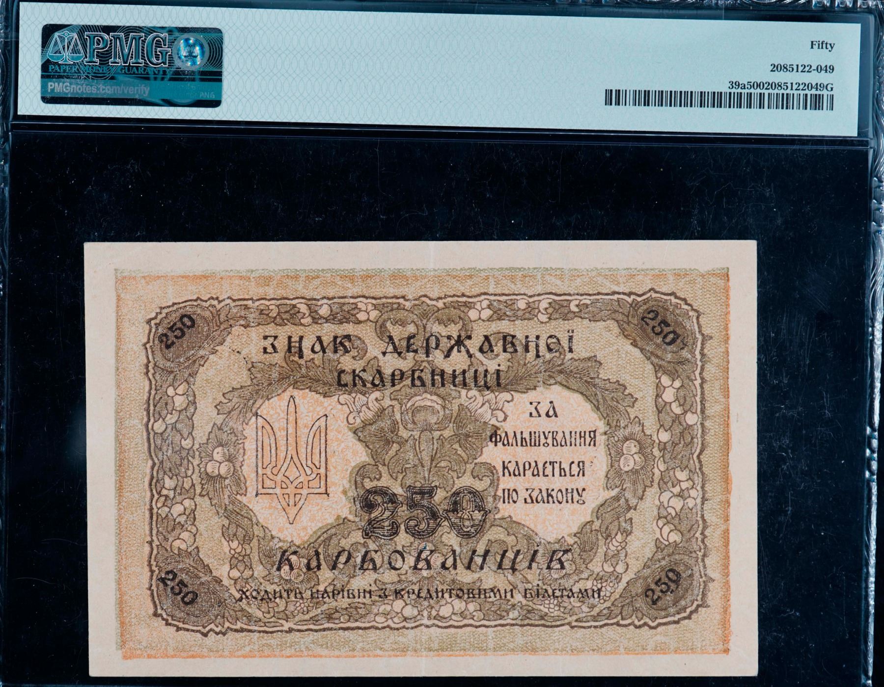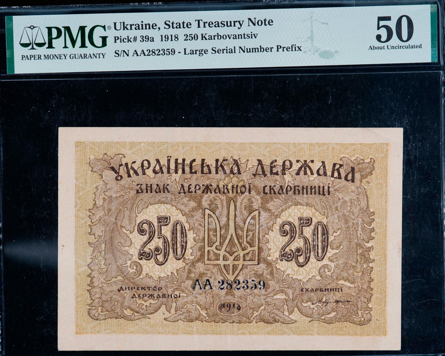 Ukraine; 1918 250 Karbovantsiv Pick #39a #AA282359 - Large Number Prefix, PMG AU50