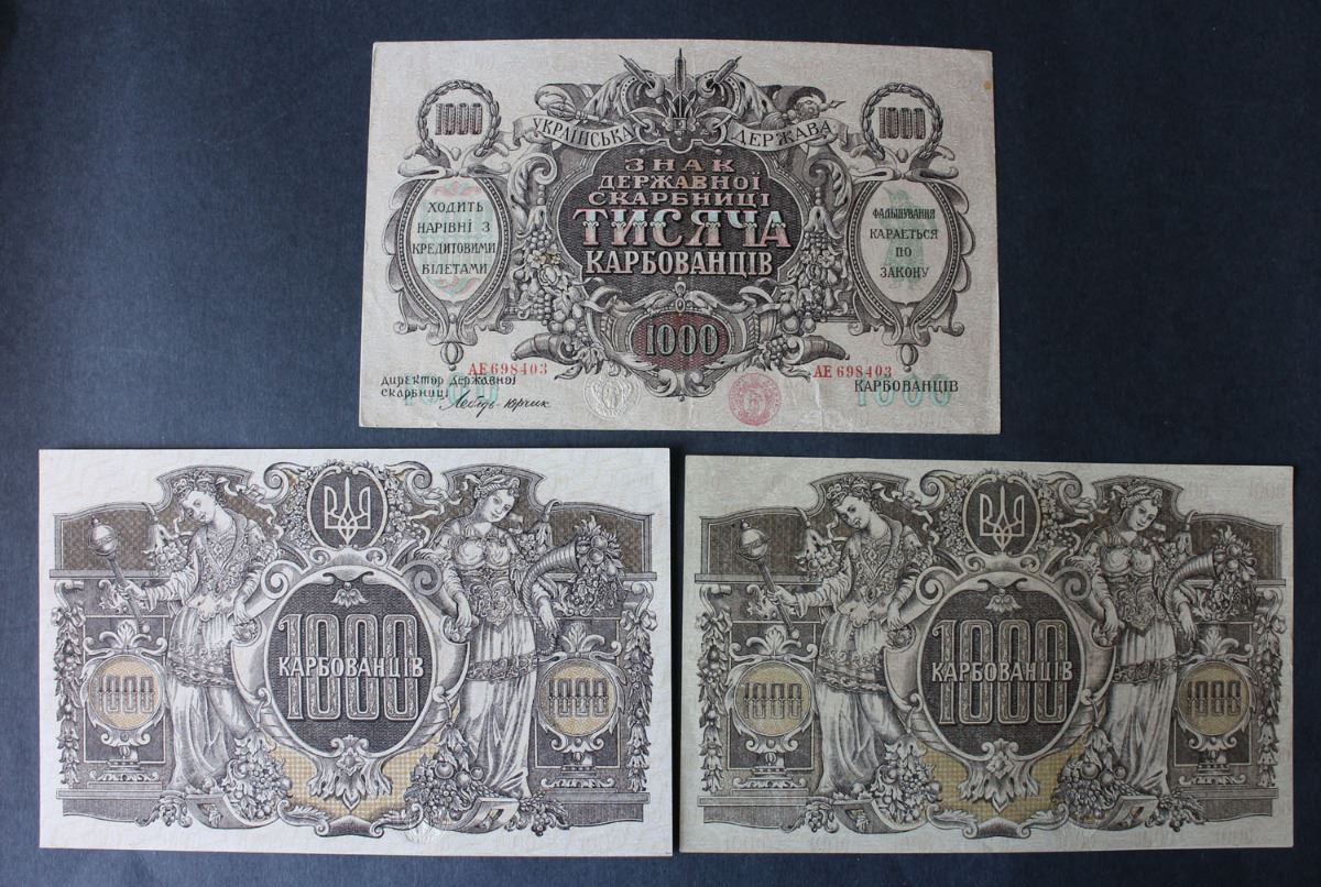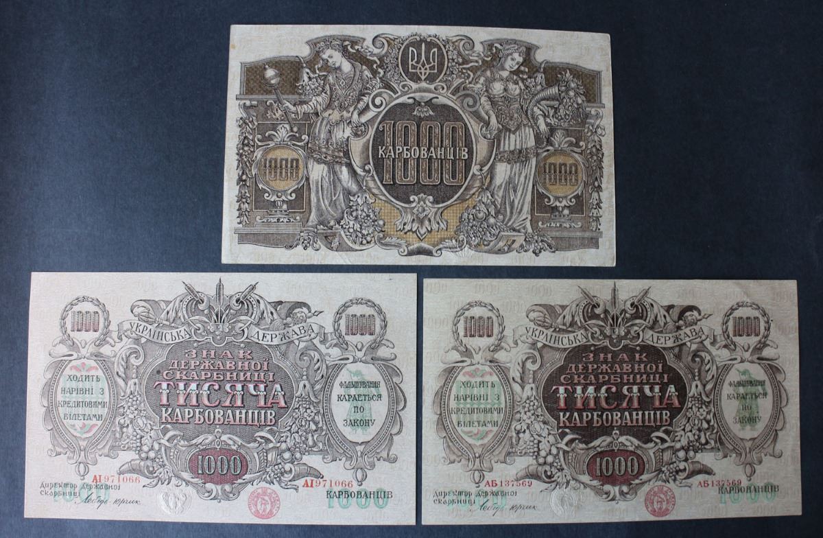 Ukraine 1918 Three 1000 Karbovantiv Banknotes AU-UNC (Pic 35a and Pic 35b)