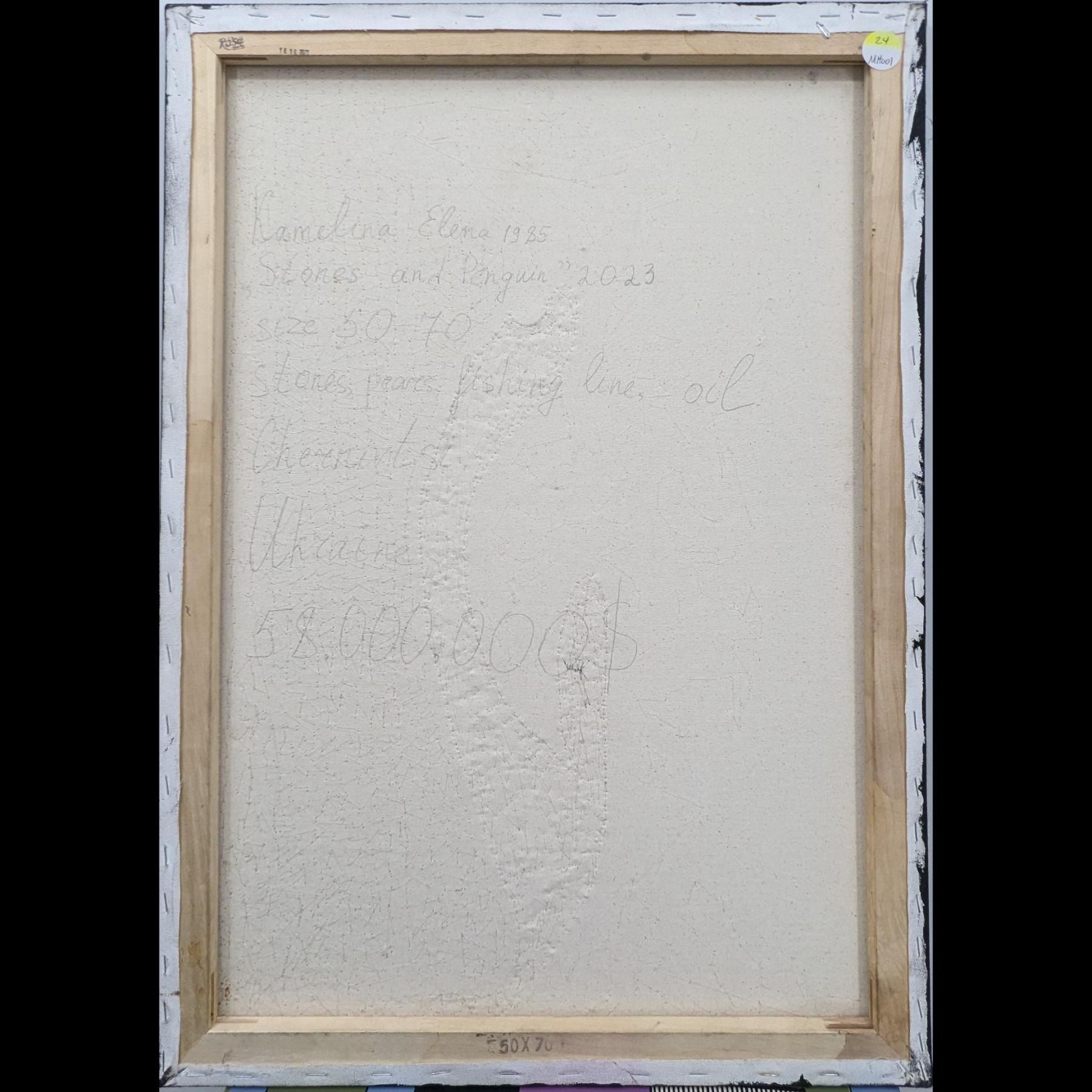 Ukrainian Artist Elena Kamelina Original Abstract Mixed Media On Canvas "Stones On Penguin", 2023. Measures approx. 27 1/2" X 19 1/2".