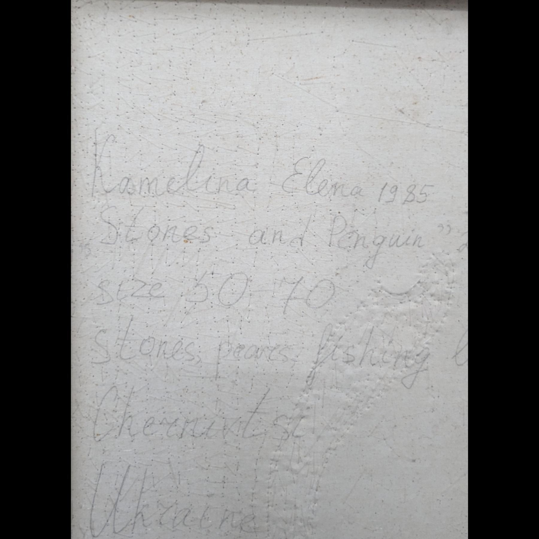 Ukrainian Artist Elena Kamelina Original Abstract Mixed Media On Canvas "Stones On Penguin", 2023