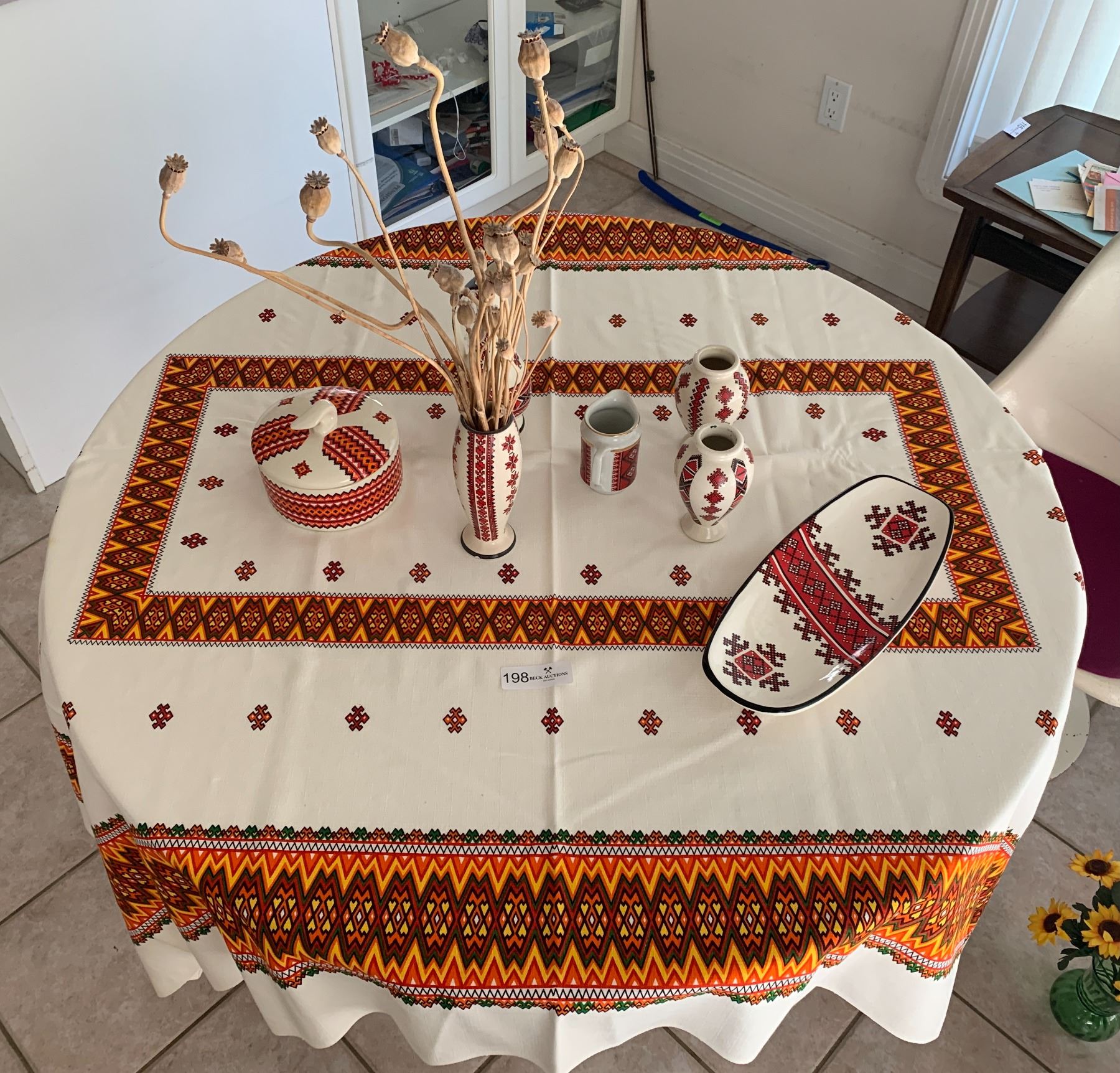 Ukrainian Embroidery-Style Tablecloth & Ukrainian Embroidery-Patterned Vases, Pitchers, & More!