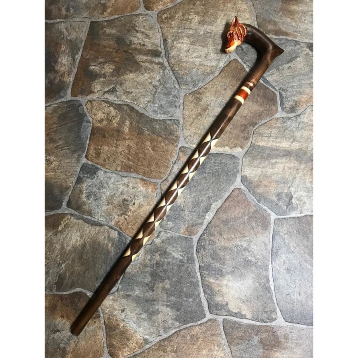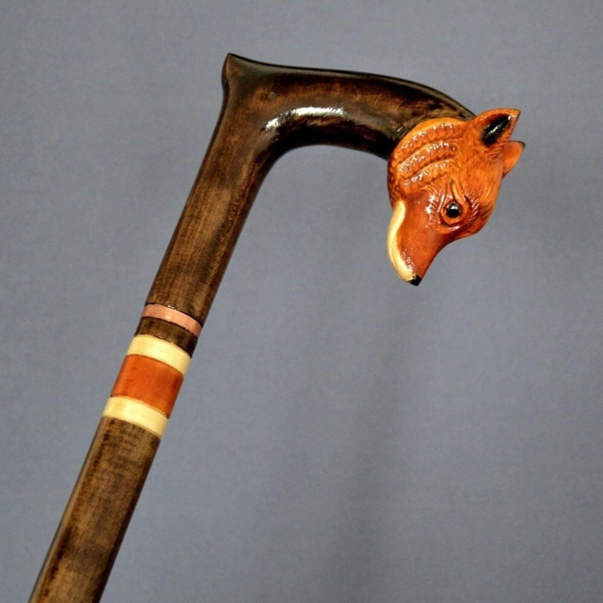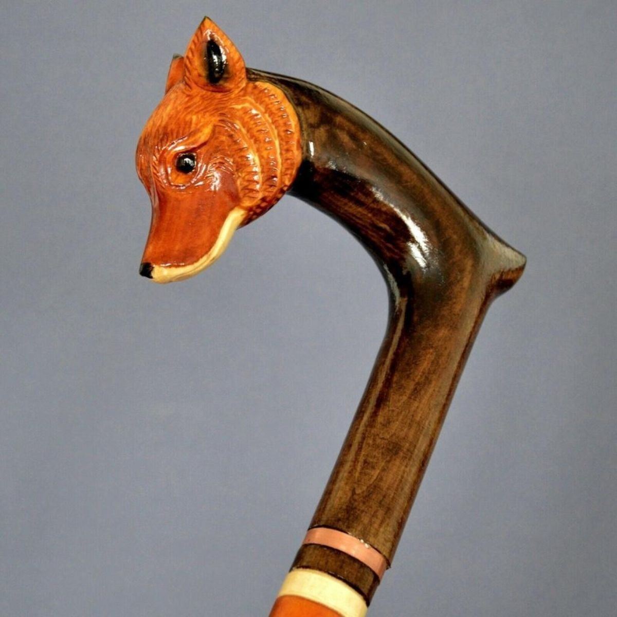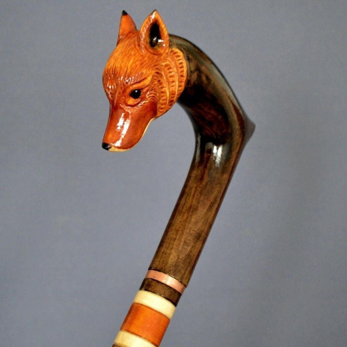Hand-carved cane, made out of Linden tree wood by a Ukrainian artisan, the handle in the form of a fox's head. 36" L.Â