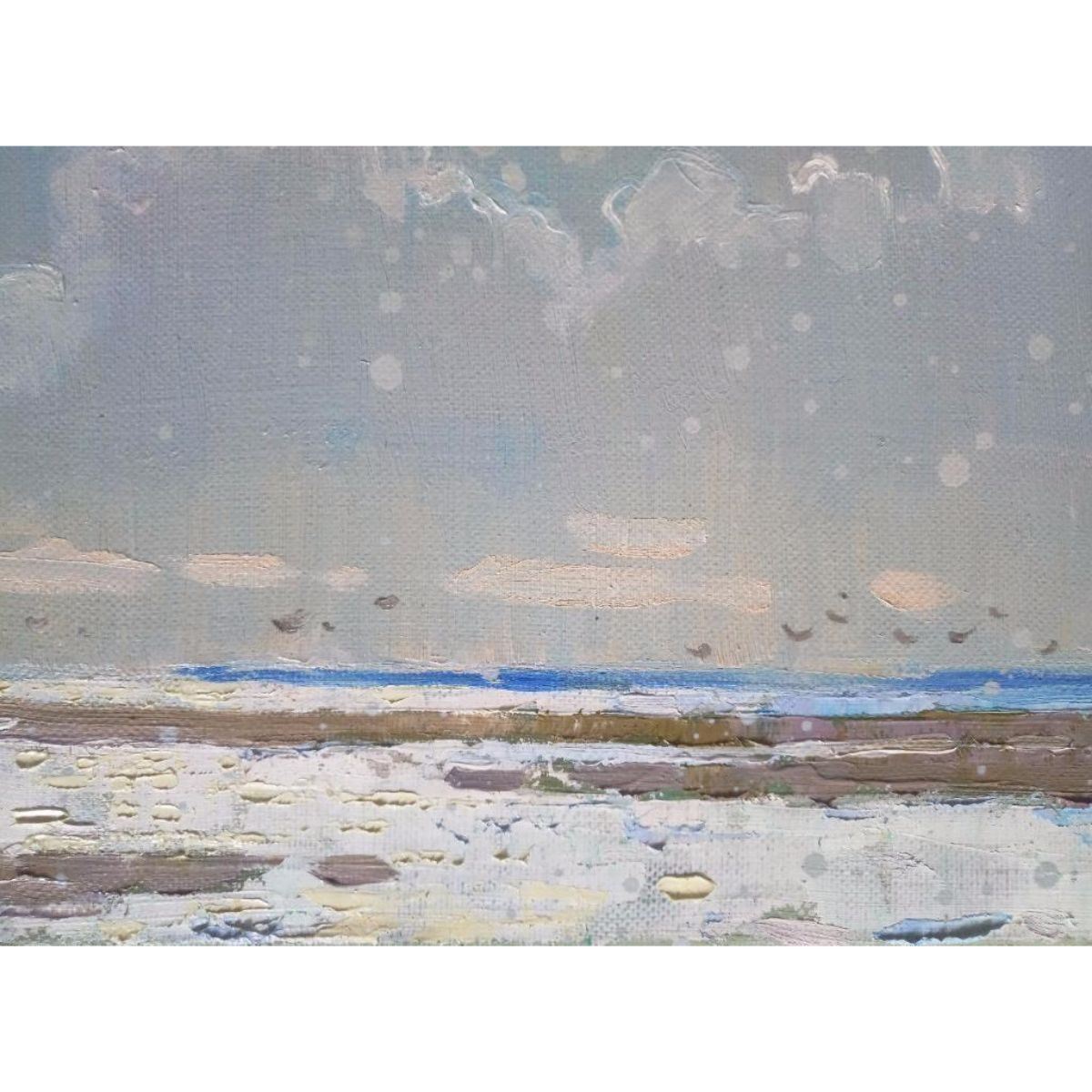 Modern 21st Century plein air Impressionism, original oil on canvas by Ukrainian artist Anna Gusarova. "Clouds", summer landscape with beach. Approx 12" X 20" on stretcher, canvas signed by the artist & dated 2017.