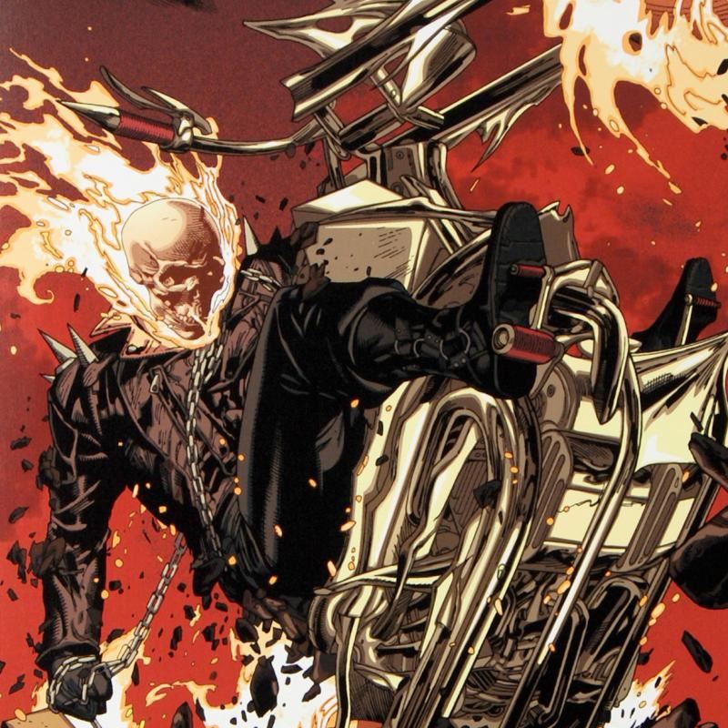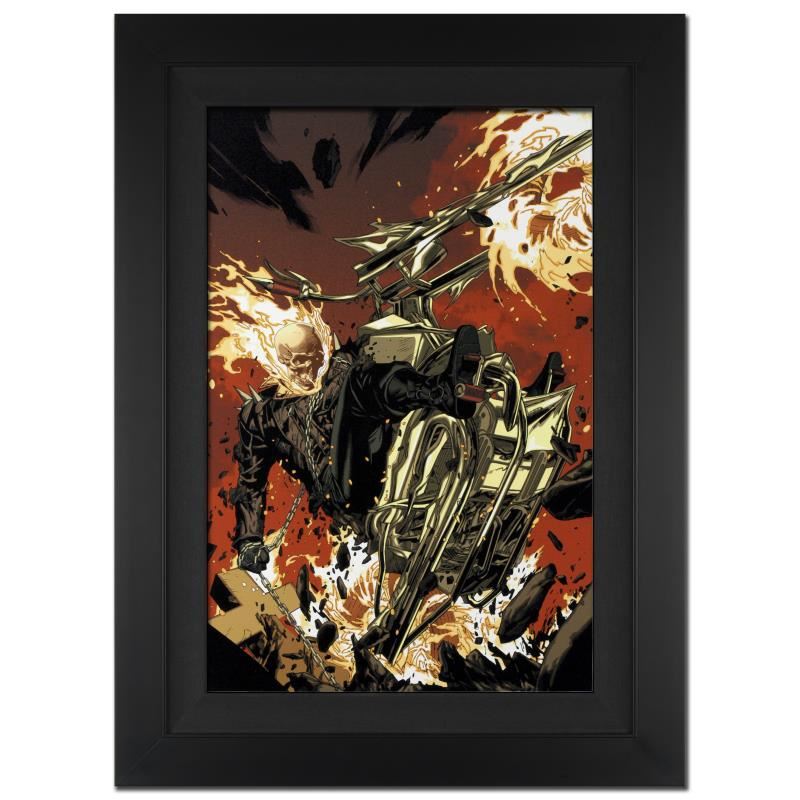 A piece of comic book history, this limited edition, from original art by Leinil Francis Yu, depicts Ghost Rider in a fury of flames. After winning the Wizard's Drawing Board Contest, Leinil Francis Yu was hired by Marvel Comics to work on the Wolverine series. After his run on Wolverine, Yu moved on to work on Marvel's core X-Men title in 2000. Yu continued to work on other Marvel titles such as Fantastic Four, Ultimate Wolverine vs. Hulk and New Avengers. "Ultimate Avengers 2 #4" is an extremely limited edition giclee on canvas by Leinil Francis Yu presented by Marvel Comics, hand signed by the great Stan Lee and numbered out of only 4! This piece was custom framed and ready to hang. Includes Certificate of Authenticity! Measures approx. 29" x 40" (with frame), 22" x 33" (image).