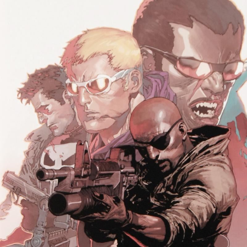 A piece of comic book history, this limited edition, from original art by Leinil Francis Yu, depicts Nick Fury. After winning the Wizard's Drawing Board Contest, Marvel Comics hired Leinil Francis Yu to work on the Wolverine series. After his run on Wolverine, he moved on to work on Marvel's core X-Men title in 2000. Yu continued to work on other Marvel titles such as Fantastic Four, Ultimate Wolverine vs. Hulk and New Avengers. "Ultimate Avengers Vs. New Ultimates #4" is an extremely limited edition giclee on canvas by Leinil Francis Yu presented by Marvel Comics, hand signed by the great Stan Lee and numbered out of only 10! This piece was custom framed and ready to hang. Includes Certificate of Authenticity! Measures approx. 25" x 34" (with frame), 18" x 24" (image).