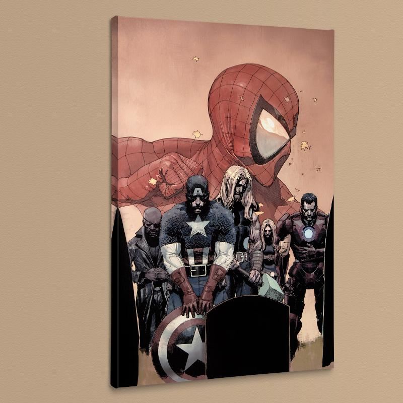 A piece of comic book history, this limited edition print, drawn by Leinil Francis Yu, depicts Nick Fury, Captain America, Iron Man, and Thor. After winning the Wizard's Drawing Board Contest, Marvel Comics hired Leinil Francis Yu to work on the Wolverine series. After his run on Wolverine, he moved on to work on Marvel's core X-Men title in 2000. Yu continued to work on other Marvel titles such as Fantastic Four, Ultimate Wolverine vs. Hulk and New Avengers. "Ultimate Avengers Vs. New Ultimates #6" is a limited edition numbered giclee on canvas by Leinil Francis Yu presented by Marvel Comics. This piece comes gallery wrapped and ready to hang. Includes Certificate of Authenticity! Measure approx. 18" x 27" (image).