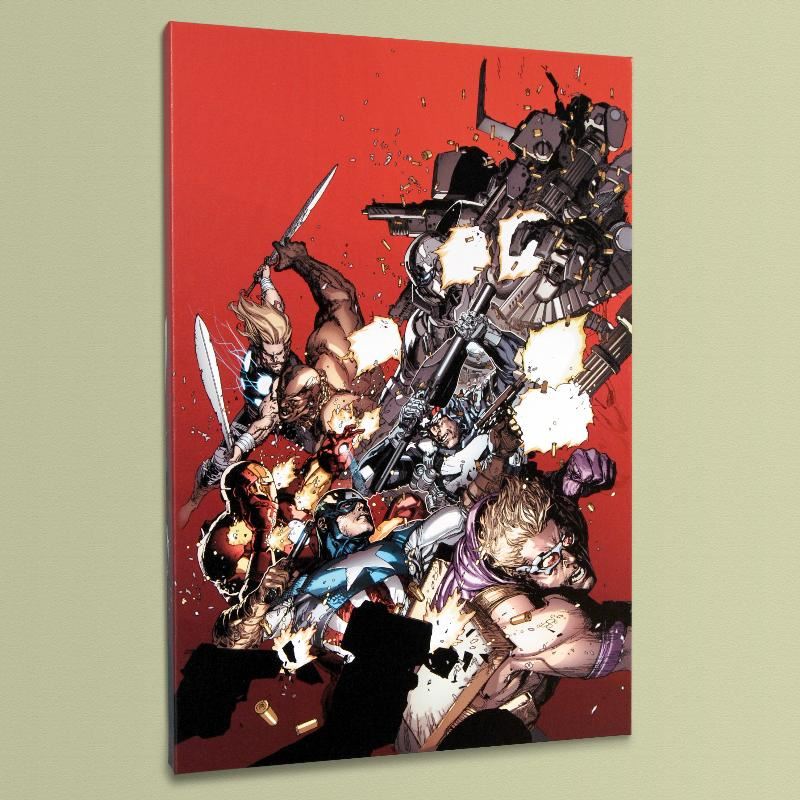 A piece of comic book history, this limited edition print, drawn by Leinil Francis Yu, depicts the heroic Avengers. After winning the Wizard's Drawing Board Contest, Marvel Comics hired Leinil Francis Yu to work on the Wolverine series. After his run on Wolverine, he moved on to work on Marvel's core X-Men title in 2000. Yu continued to work on other Marvel titles such as Fantastic Four, Ultimate Wolverine vs. Hulk and New Avengers. "Ultimate Avengers vs. New Ultimates #1" is a limited edition numbered giclee on stretched canvas by Leinil Francis Yu presented by Marvel Comics. This piece comes gallery wrapped and ready to hang. Includes Certificate of Authenticity! Measures approx. 18" x 27" (image); 1.5" (depth).