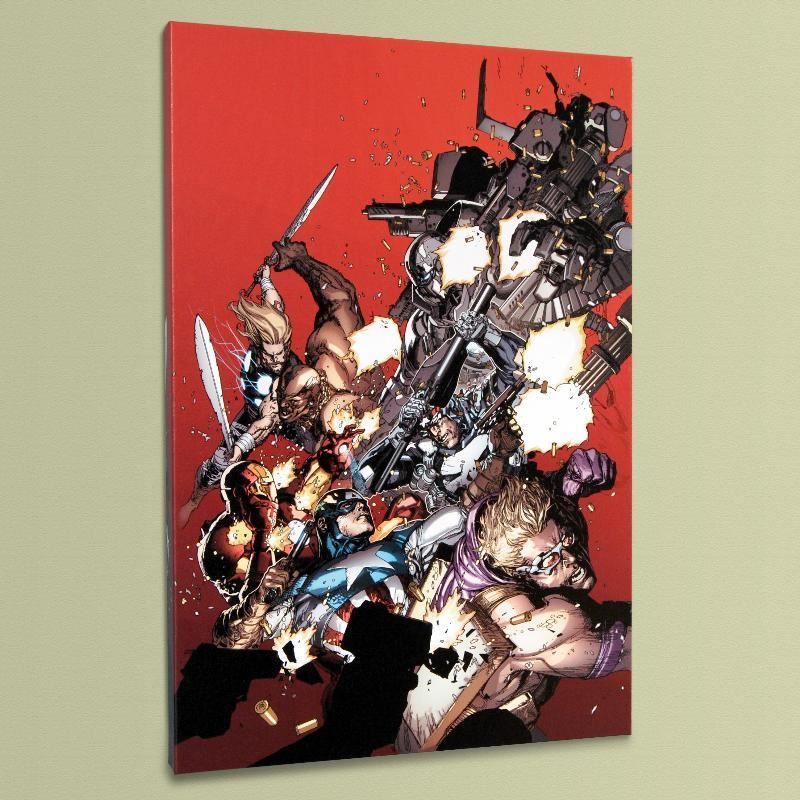 A piece of comic book history, this limited edition, from original art by Leinil Francis Yu, depicts the heroic Avengers. After winning the Wizard's Drawing Board Contest, Marvel Comics hired Leinil Francis Yu to work on the Wolverine series. After his run on Wolverine, he moved on to work on Marvel's core X-Men title in 2000. Yu continued to work on other Marvel titles such as Fantastic Four, Ultimate Wolverine vs. Hulk and New Avengers. "Ultimate Avengers vs. New Ultimates #1" is a limited edition numbered giclee on stretched canvas by Leinil Francis Yu presented by Marvel Comics. This piece comes gallery wrapped. Includes Certificate of Authenticity! Measures approx. 18" x 27" (image); 1.5" (depth).