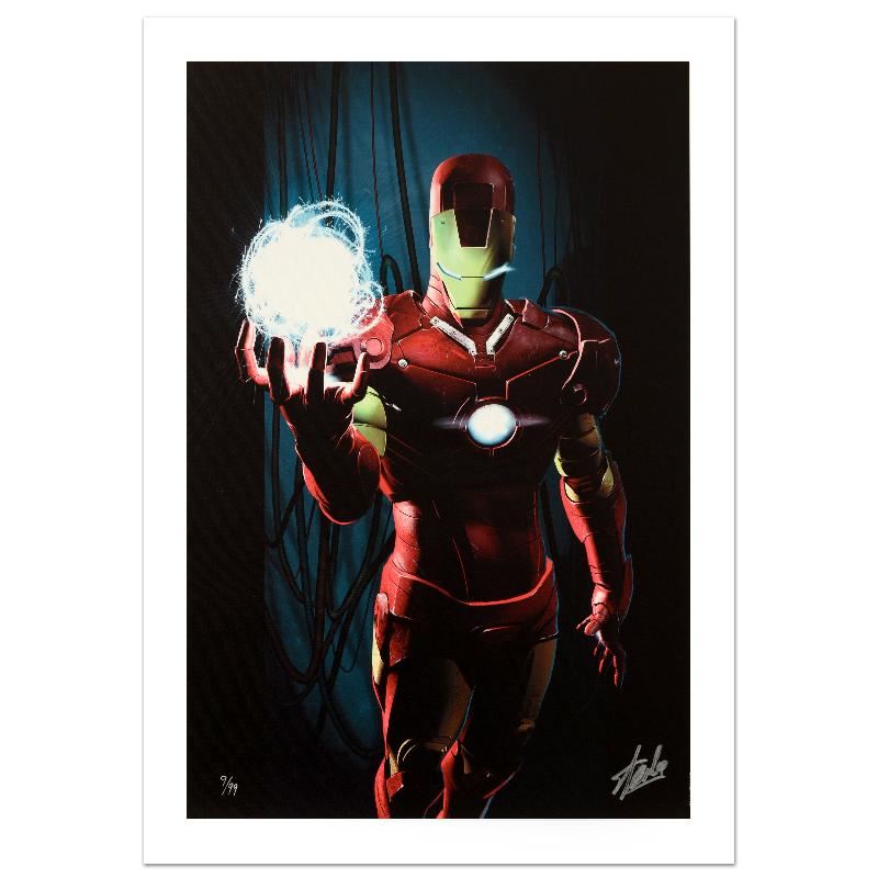 A piece of comic book history, this limited edition, from original art by Kaare Andrews, depicts an epic Iron Man. Kaare Andrews is a Canadian comic book writer and artist and filmmaker known for his cover work on Incredible Hulk and many other comic books published by Marvel Comics. He was the first recipient of The Shuster Award for Outstanding Artist in 2005 for his work on Spider-Man: Doctor Octopus. He has also worked on Ultimate X-Men, Gen, The Amazing Spider-Man and The Matrix Comics. "Ultimate Comics Ultimates #3" is a numbered limited edition giclee on canvas by Kaare Andrews presented by Marvel Comics, hand signed by the great Stan Lee! Includes Certificate of Authenticity! Measures approx. 18" x 27" (image).