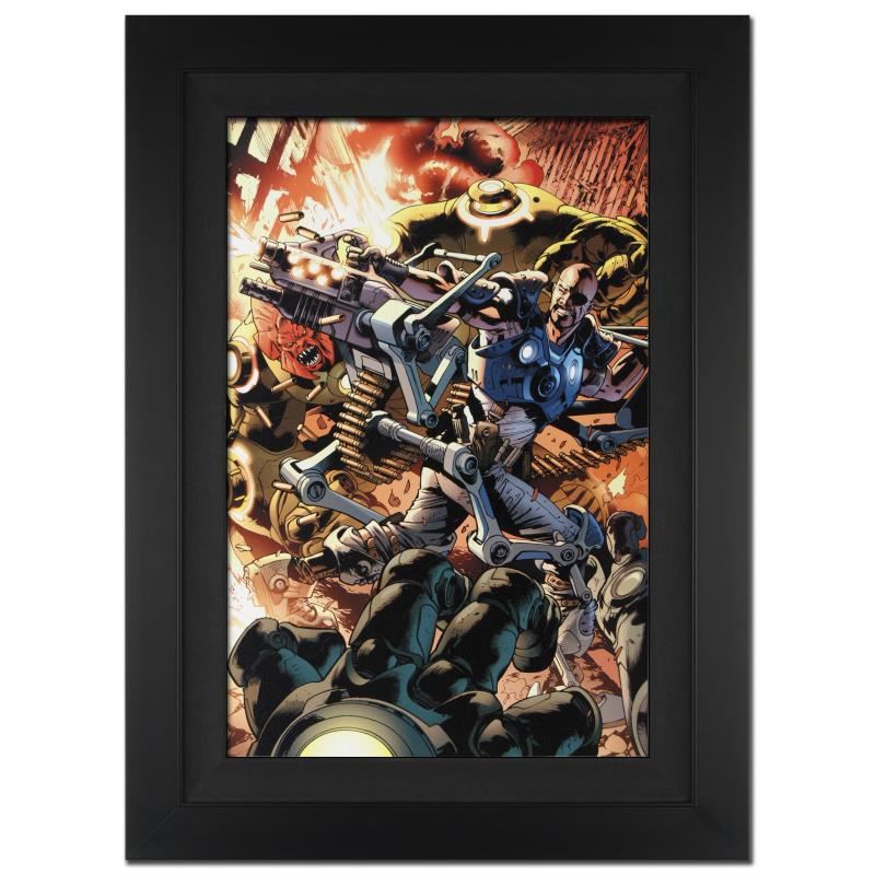 A piece of comic book history, this limited edition, from original art by Bryan Hitch, depicts an adventure packed scene starring Nick Fury. British artist Bryan Hitch was inspired by comic books at an early age. Not only has Hitch worked on The Avengers, Captain America, and She-Hulk, but he also did the character design for the Ultimate Avengers and Ultimate Avengers 2 animated films. "Ultimate Doom #1" is an extremely limited edition giclee on canvas by Bryan Hitch presented by Marvel Comics, hand signed by the great Stan Lee and numbered out of only 10! This piece comes custom framed and ready to hang. Includes Certificate of Authenticity! Measures approx. 25" x 34" (with frame), 18" x 27" (image).