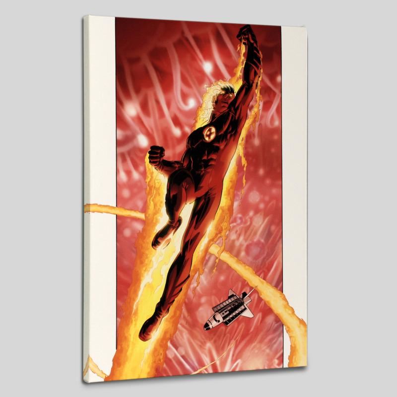 A piece of comic book history, this limited edition, from original art by Adam Kubert, depicts hero Marvel characters. Adam Kubert began his professional comics career at age 12 as a letterer. He went on to attend the Rochester Institute of Technology, graduating with a degree in medical illustration. He subsequently attended The Kubert School in Dover, New Jersey. He is known for his work on such titles as: Ultimate X-Men, Ultimate Fantastic Four, Incredible Hulk, Wolverine. "Ultimate Fantastic Four #16" is a limited edition numbered giclee on canvas by Adam Kubert presented by Marvel Comics. This piece comes gallery wrapped. Includes Certificate of Authenticity! Measures approx. 18" x 27" (image).