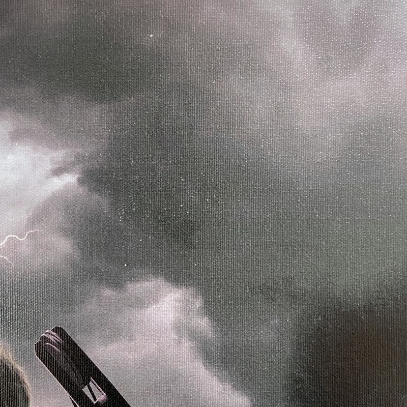 "Ultimate Hawkeye #2" is a limited edition giclee on canvas with art by Kaare Andrews. Officially licensed by Marvel, this piece is numbered 3/99 and hand signed by creative legend Stan Lee (1922-2018). The piece comes with a certificate of authenticity. There is some minor scuffing in the clouds (top center, see photos) - the peice should still present nice.Measures approximately 27" x 18".