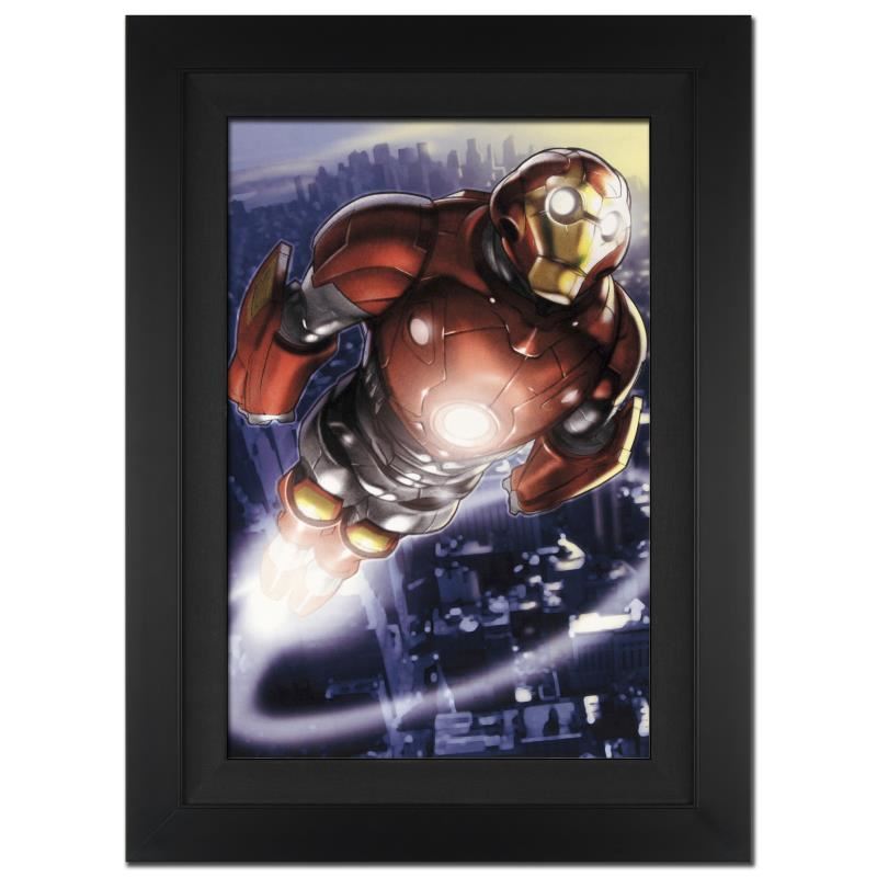 A piece of comic book history, this limited edition, from original art by Pasqual Ferry, depicts the classic character Iron Man. Known for his work on Heroes for Hire, Action Comics and Adam Strange, Pasqual Ferry is now the new artist for Marvel's Ultimate Fantastic Four. "Ultimate Iron Man II #3" is an extremely limited edition giclee on canvas by Pasqual Ferry presented by Marvel Comics, hand signed by the great Stan Lee and numbered out of only 4! This piece is custom framed and ready to hang. Includes Certificate of Authenticity! Measures approx. 29" x 40" (with frame); 22" x 33" (image).