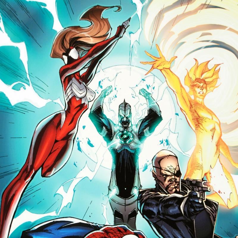 A piece of comic book history, this limited edition, from original art by J. Scott Campbell, depicts Spider Woman, Spider-Man, Nick Fury, Captain Marvel and The Human Torch. Though he became famous for drawing for Wildstorm Comics, J. Scott Campbell now works on a Spider-Man series with Jeff Loeb. "Ultimate Mystery #1" is an extremely limited edition giclee on canvas by J. Scott Campbell presented by Marvel Comics, hand signed by Campbell and the the great Stan Lee and numbered out of only 10! This piece comes custom framed and ready to hang. Includes Certificate of Authenticity! Measures approx. 25" x 34" (with frame); 18" x 27" (image).