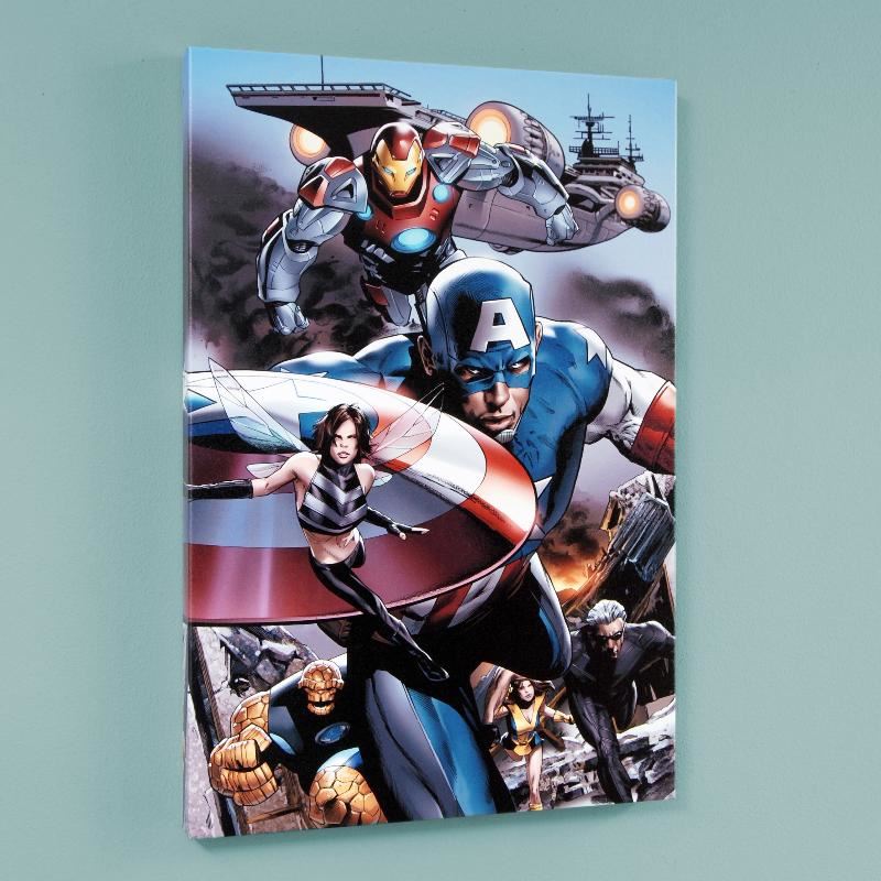 A piece of comic book history, this limited edition, from original art by Greg Land, depicts the classic characters Captain America, Thing, and Iron Man. Greg Land got his start as an illustrator for an independent publisher. After landing a job at Marvel, Land has produced illustrations for X-Men and the Fantastic Four, among others. "Ultimate Power #6" is a limited edition numbered giclee on stretched canvas by Greg Land presented by Marvel Comics. This piece comes gallery wrapped and ready to hang. Includes Certificate of Authenticity! Measures approx. 18" x 27" (image); 1.5" (depth).