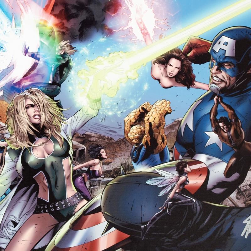 A piece of comic book history, this limited edition, from original art by Greg Land, depicts Scarlet Witch, Captain America, Thing, Wasp, Shadowcat, Power Princess, Arcanna, Dr. Spectrum, Nighthawk, and Tom Thumb. Greg Land got his start as an illustrator for an independent publisher. After landing a job at Marvel, Land has produced illustrations for X-Men and the Fantastic Four, among others. "Ultimate Power #6" is a limited edition giclee on canvas by Greg Land presented by Marvel Comics, numbered and hand signed by the great Stan Lee! Includes Certificate of Authenticity! Measures approx. 24" x 18" (image).