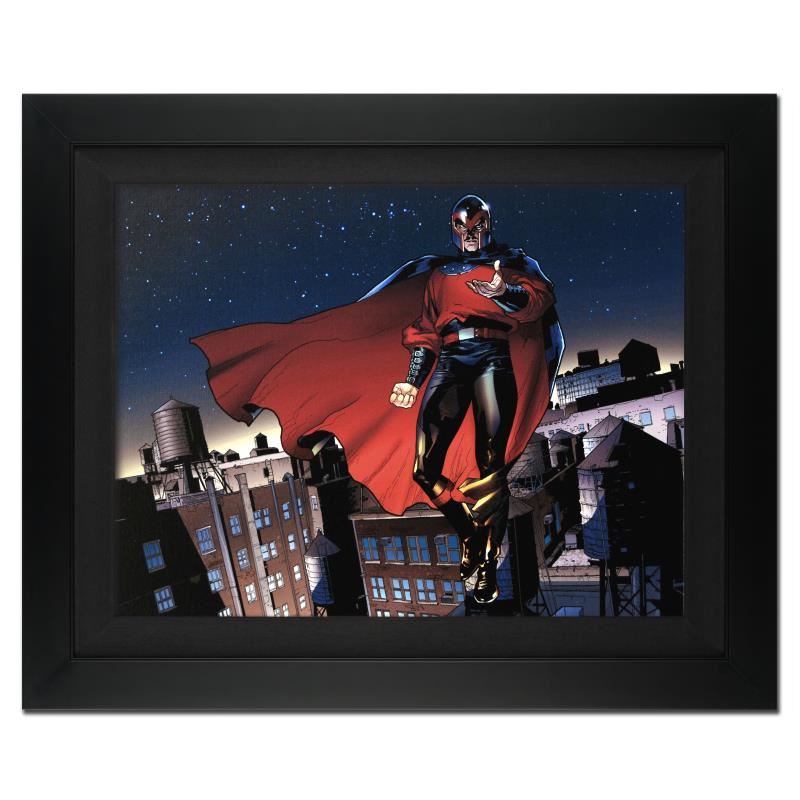 A piece of comic book history, this limited edition, from original art by Stuart Immonen, depicts the classic villain Magneto. Stuart Immonen is a Canadian comic book artist. He is best known for his work on Nextwave, Ultimate X-Men, The New Avengers and Ultimate Spider-Man. Immonen studied at Toronto's York University, pursuing a career in art. In 1988, he self-published a series called Playground; it was his first published work. He worked at several smaller comic book companies before being hired by DC Comics and Marvel Comics in 1993. "Ultimate Spider-Man #119" is an extremely limited edition giclee on canvas by Stuart Immonen presented by Marvel Comics, hand signed by the Great Stan Lee (1922-2018) and numbered out of only 10! This piece comes custom framed and ready to hang. Includes Certificate of Authenticity! Measures approx. 31" x 25" (with frame); 24" x 18" (image).