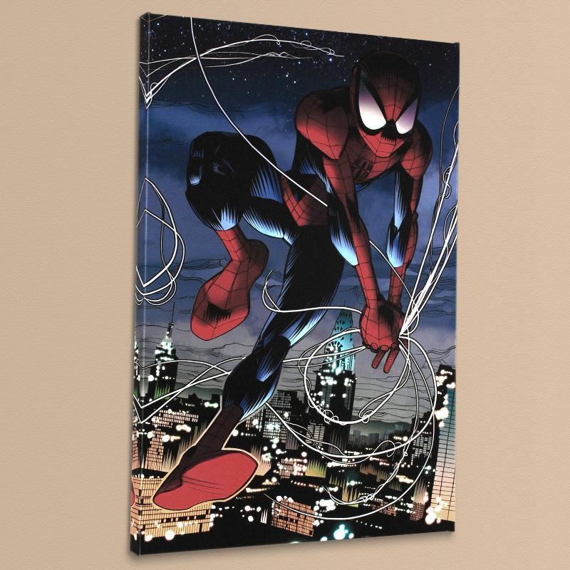 A piece of comic book history, this limited edition, from original art by Sara Pichelli, depicts Spider-Man. Sara Pichelli is an Italian artist; she got her start in animation before entering into the world of comic book artistry. She joined the Marvel Comics team in 2008, after being discovered in an international talent search. Pichelli is the artist responsible for the Miles Morales Version of Ultimate Spider-Man. In 2011 Pichelli won an Eagle Award for Favorite Newcomer Artist. "Ultimate Spider-Man #152" is numbered limited edition giclee on canvas by Sara Pichelli presented by Marvel Comics. This piece comes gallery wrapped. Includes Certificate of Authenticity. Measures approx. 18" x 27" (image).
