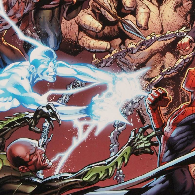 A piece of comic book history, this limited edition, from original art by Mark Bagley, depicts Spider-Man, Iceman, Vulture, Kraven the Hunter, Green Goblin, Sandman, and Dr. Octopus. Mark Bagley got his start by winning Marvel's Try-Out contest, for which he was awarded penciling jobs. Soon, Bagley was drawing regularly for the renowned Spider-Man franchise. "Ultimate Spider-Man #158" is a limited edition giclee on canvas by Mark Bagley presented by Marvel Comics, hand signed by the great Stan Lee and numbered out of only 10! This piece comes custom framed using aicd free and archival materials and is ready to hang. Includes Certificate of Authenticity! Measures approx. 25" x 34" (with frame), 18" x 27" (image).