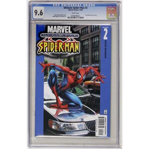 <B>Ultimate Spider-Man #2 (Marvel, 2000) CGC NM+ 9.6 White pages.</B></I> Overstreet 2007 NM- 9.2 value = $35. CGC census 10/07: 475 in 9.6, 554 higher.<BR><BR><b>Shipping:</b> Comics - Slabbed (certified) (<a target="_blank" href="http://www.heritageauctions.com/common/shipping.php">view shipping information</a>)