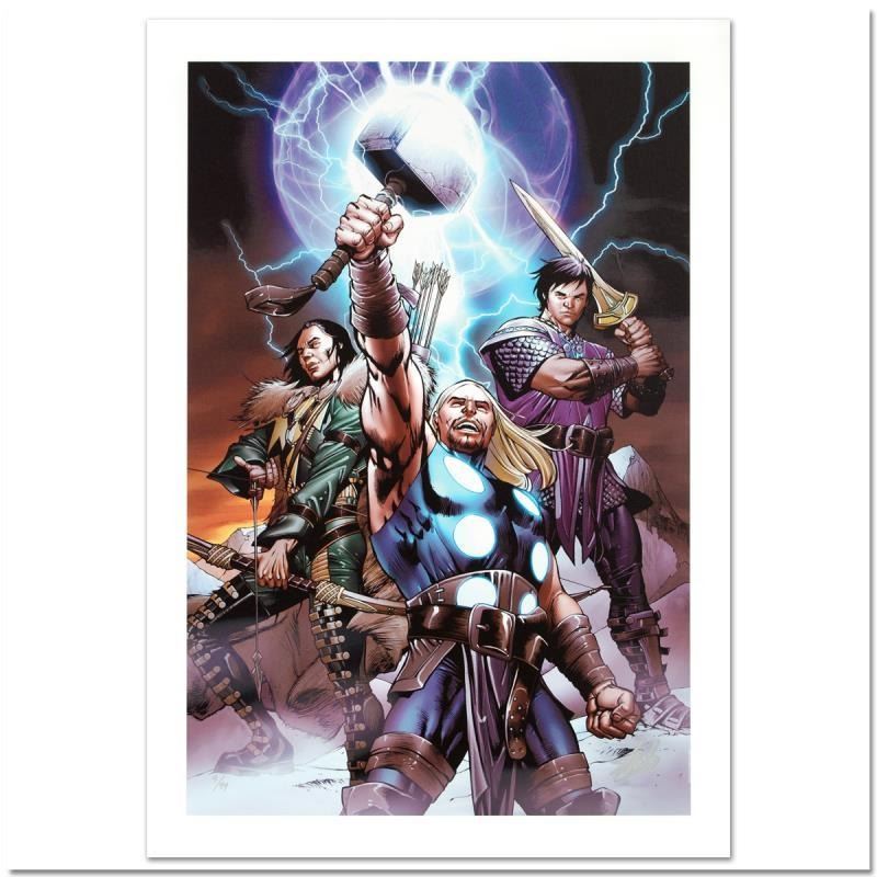 "Ultimate Thor #3" is a limited edition giclee on canvas with art by Carlos Pacheco. Officially licensed by Marvel, this piece is numbered 1/99 and hand signed by creative legend Stan Lee (1922-2018). The piece comes with a certificate of authenticity. Me