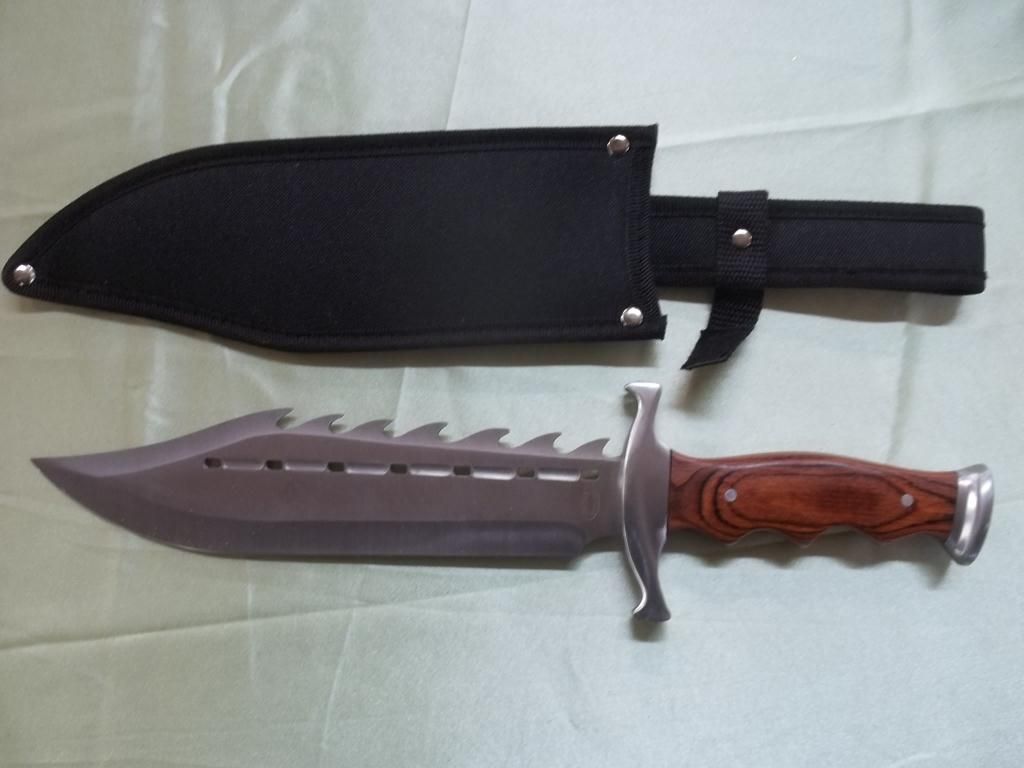 Stainless Steel Sawback Spine, Pakawood Finger Grooved Handle W/Nylon Sheath