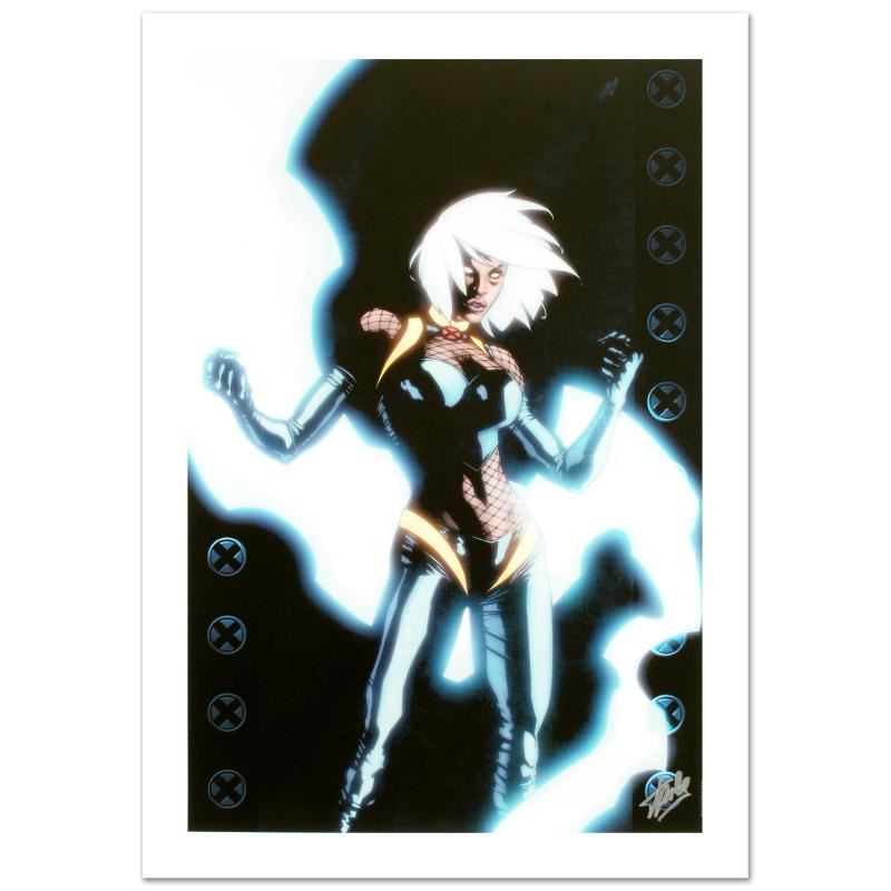 A piece of comic book history, this limited edition, from original art by Yanick Paquette, depicts the classic character Storm. Yanick Paquette is a Canadian penciller in North American comics. He has worked for Antarctic Press, Topps, Marvel and DC Comics and since 1994. Among the titles Paquette has worked on are Adventures of Superman, Areala Warrior Nun, Avengers, Superman: The Man of Steel, Xena: Warrior Princess, and Civil War: X-Men. "Ultimate X-Men #89" is a limited edition giclee on canvas by Yanick Paquette presented by Marvel Comics, numbered out of 99 and hand signed by the great Stan Lee! Includes Certificate of Authenticity! Measures approx. 18" x 27" (image).