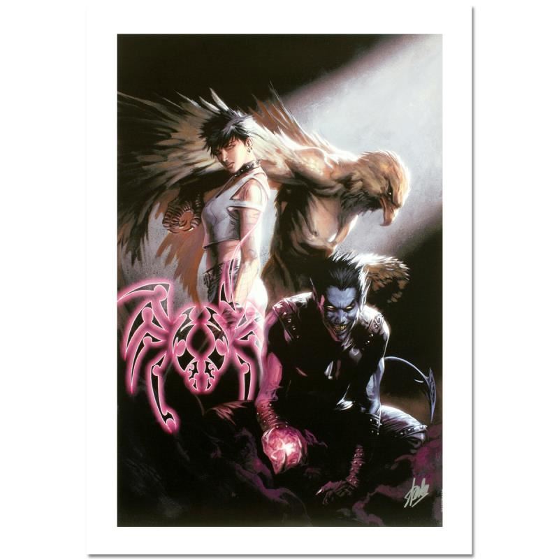 "Ultimate X-Men #95" is a limited edition giclee on canvas with art by Gabriel Dell'Otto. Officially licensed by Marvel, this piece is numbered 1/10 and hand signed by creative legend Stan Lee (1922-2018). The piece comes with a certificate of authenticity. Please note the piece has a small imperfection in center visible under close inspection, but generally displays fine. Measures approximately 27" x 18".