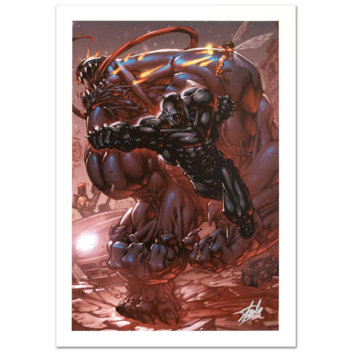 A piece of comic book history, this limited edition, from original art by Joe Madureira, depicts an action packed scene featuring the Avengers. Beginning at Marvel Comics as an intern, Joe Madureira soon worked his way up to be the main penciller for "The Uncanny X-Men" series. "Ultimates #3" is a limited edition numbered giclee on canvas by Joe Madureira presented by Marvel Comics, numbered and hand signed by the Great Stan Lee (1922-2018)! Includes Certificate of Authenticity! Measure approx. 18" x 27" (image). Reference #: 186891.