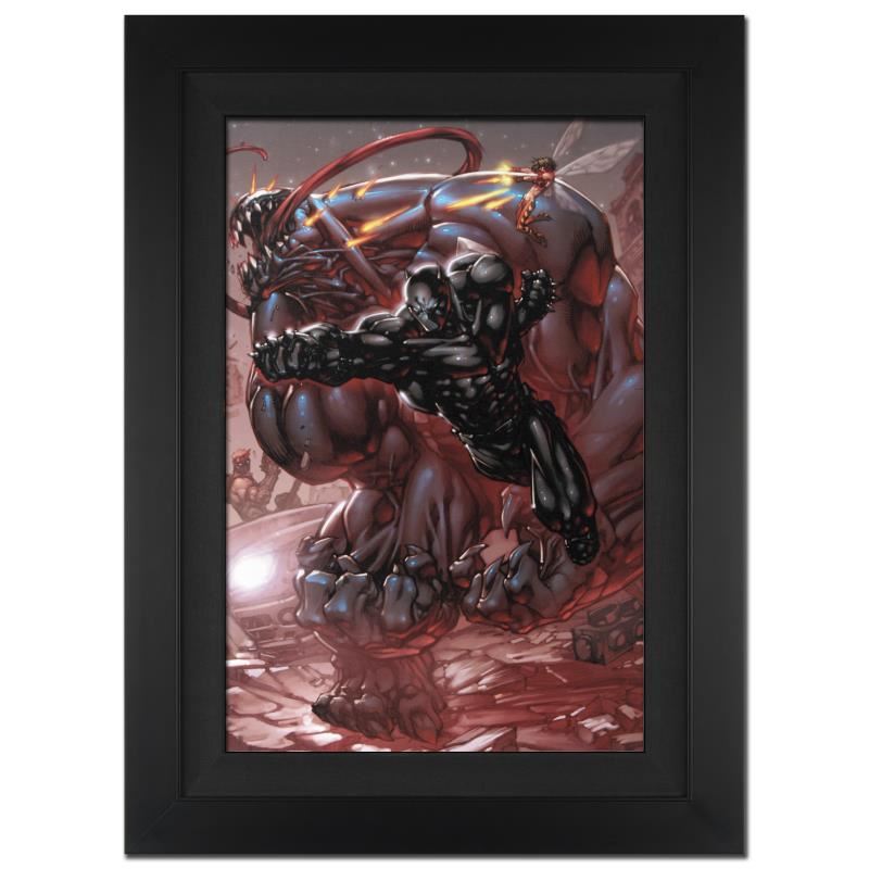A piece of comic book history, this limited edition, from original art by Joe Madureira, depicts an action packed scene featuring the Avengers. Beginning at Marvel Comics as an intern, Joe Madureira soon worked his way up to be the main penciller for "The Uncanny X-Men" series. "Ultimates #3" is a limited edition numbered giclee on canvas by Joe Madureira presented by Marvel Comics, hand signed by the Great Stan Lee (1922-2018) and numbered out of only 4! This piece has been custom framed and ready to hang. Includes Certificate of Authenticity! Measures approx. 29" x 40" (with frame); 22" x 33" (image).
