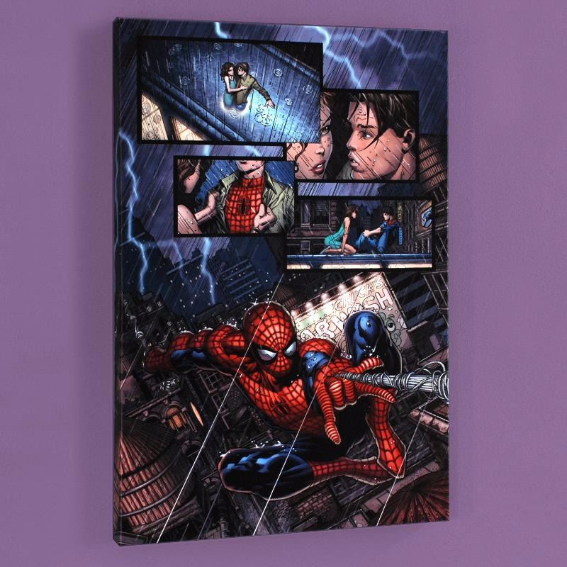 A piece of comic book history, this limited edition, from original art by David Finch,depicts Spider-Man in action. In 2003, Finch came to Marvel Comics for a year-long arc on Ultimate X-Men, after which he began work on The Avengers and thereafter The New Avengers. He has also worked on such titles as Captain America, Spider-Man and the Hulk. "Ultimatum #1" is a limited edition numbered giclee on stretched canvas by David Finch presented by Marvel Comics. This piece comes gallery wrapped and ready to hang. Includes Certificate of Authenticity! Measure approx. 18" x 27" (image); 1.5" (depth). Retail Price $500.00. PRICE INCUDES FREE SHIPPING IN THE U.S. - SHIPPING WILL BE ADDED TO YOUR INVOICE FOR ALL BUYERS OUTSIDE OF THE U.S.