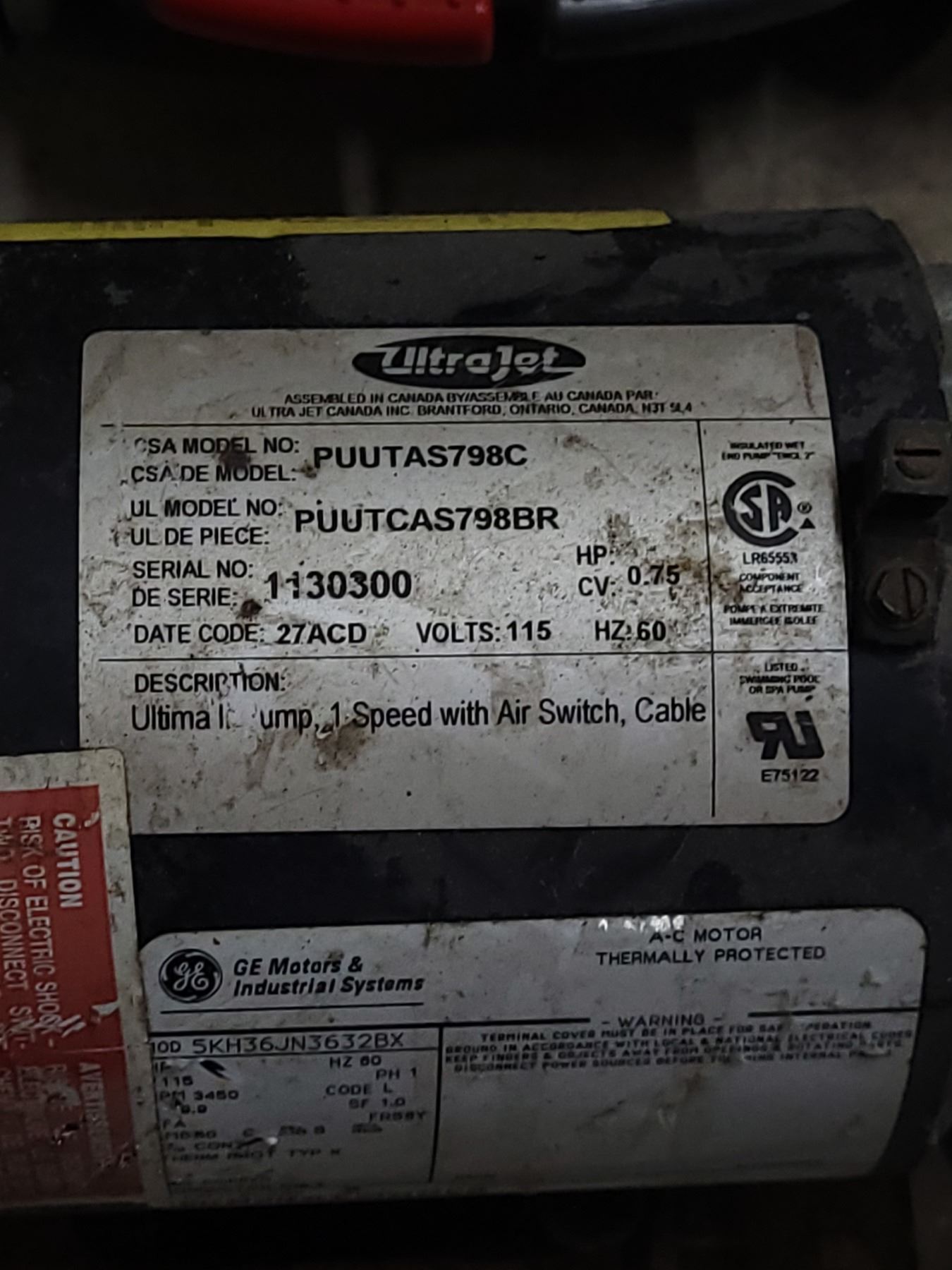 Ultra Jet Motor | Model PUUTAS789C No shipping available