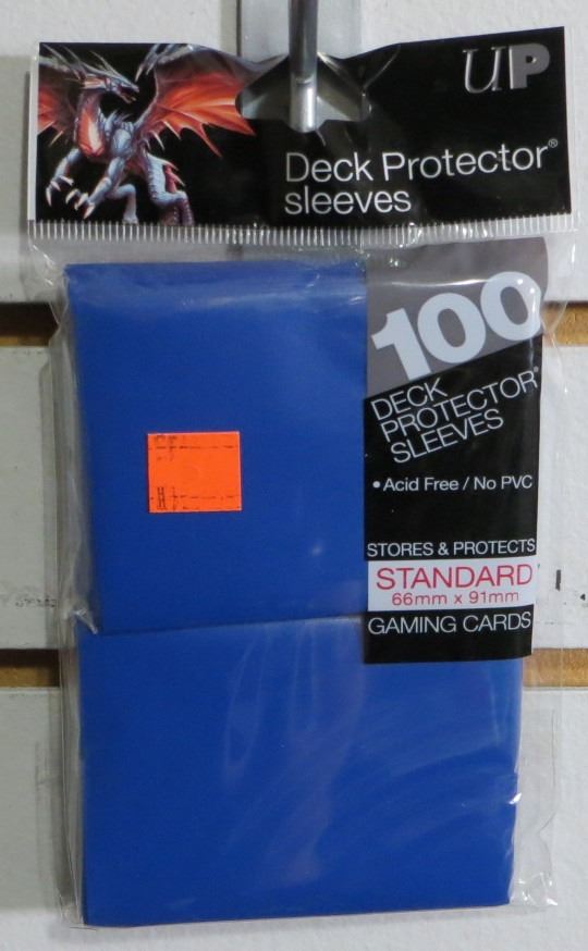 Solid blue card sleeves with Ultra-Pro's hologram quality seal. Stores and protects standard sized cards. 100-count pack. All Ultra-Pro Deck Protectors are archival-safe and acid-free.