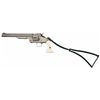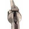 Condition: Very good. The revolver retains nearly 95% original nickel-plated finish. Wear is limited to some very minor spots of flaking on the sides and bottom of the barrel, the trigger guard and the rear edges of the cylinder. The hammer and trigger retain at least 90% of the original case colors. The stocks are excellent overall and the edges of the relief-carved monogram are sharp and showing several attractive circular age cracks on the bottom of the stocks. The legend on barrel rib, serial number and assembly numbers are sharp. The detachable stock retains at least 98% of the blue finish. The case interior and exterior are excellent. This is an outstanding example of a highly desirable First Model American Revolver in the rarest of all calibers and in stunning original condition.