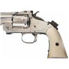 This is an example of one of the most rare and highly sought after of the First Model Americans. One of only 200 First Model Americans manufactured in the 44 RF caliber. Manufactured circa 1871. The revolver has a nickel-plated barrel, frame, cylinder and trigger guard with a casehardened hammer and trigger. The revolver has period hand carved two-piece ivory grips. The elaborate monogram "JBMO" is relief-carved in a shield on the right grip. The back strap has a screw fastened mount for an interseting period detachable skelton stock with hinged buttplate. The stock has a high polish blue finish. The top of the barrel rib is roll-stamped with the legend "+ SMITH & WESSON SPRINGFIELD MASS. U.S.A. PAT. JULY 10. 60. JAN. 17. FEB. 17. JULY 11. 65 & AUG.24. 69+" in one line. The serial number "4310" is stamped on the bottom of the butt. The assembly number "381" is stamped on the rear face of the cylinder, barrel latch and barrel. The revolver and stock are complete with a contemporary French fitted walnut case with blue velvet lining.