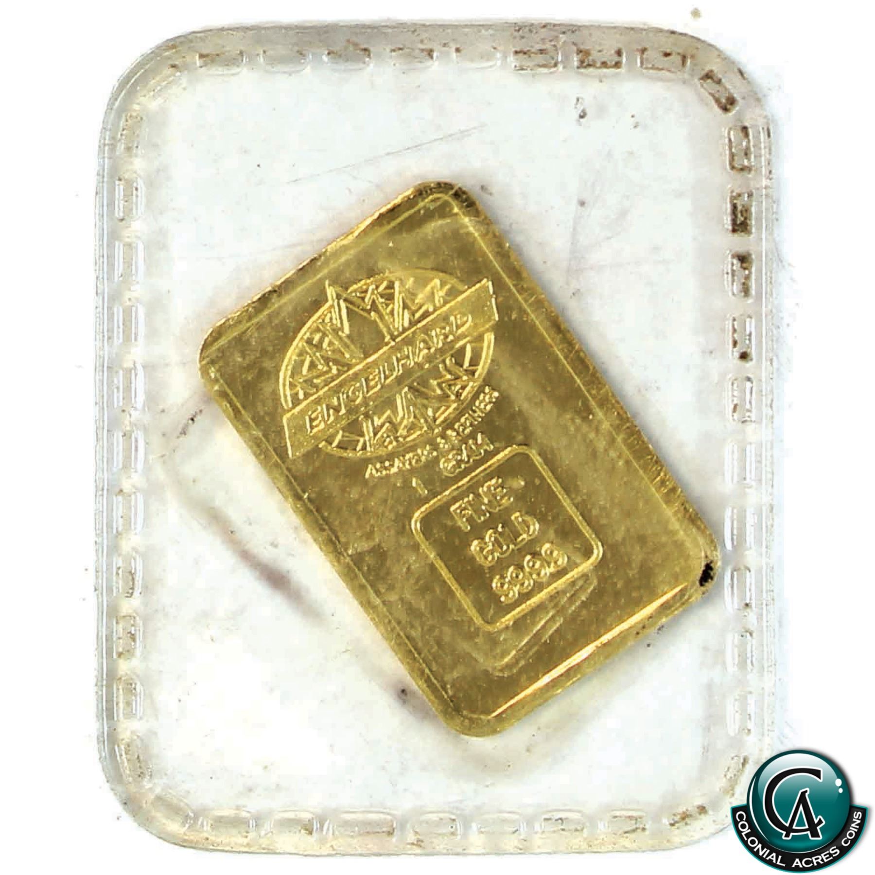 Ultra Scarce Engelhard 1 gram Fine Gold Bar with Maple Design (Tax Exempt).