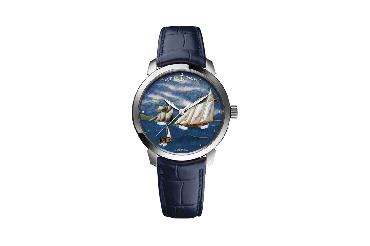 Model: 8150-111-2/AMERICA - CASE = [Material:18kt White Gold], [Case Diameter:40], [Water Resistant:50 Meters- 165 Feet], [Crystal:Sapphire], DIAL = [Color:Genuine Enamel "Cloisonne"], MOVEMENT = [Type:Manual Winding], BAND = [Clasp:Tang], [Type:Blue Alligator Leather], (Usually ships in 1 to 2 weeks.)