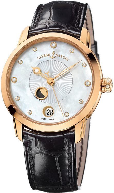 Model: 8296-123-2/991 - CASE = [Material:18kt Rose Gold], [Case Diameter:35], [Bezel:Fixed], [Case Back:Transparent], [Water Resistant:50 Meters - 150 Feet], [Crystal:Scratch Resistant Sapphire], DIAL = [Color:Mother Of Pearl], MOVEMENT = [Type:Automatic Self Winding], [Crown:Pull and Push], BAND = [Clasp:Tang], [Type:Black Alligator Leather], (Usually ships in 1 to 2 weeks.)