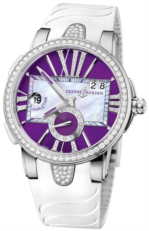 Model: 243-10B-3C/30-07 - CASE = [Material:Stainless Steel], [Case Diameter:40], [Case Thickness:12.80mm], [Case Back:See-thru Sapphire crystal], [Water Resistant:50 Meters - 150 Feet], [Crystal:Scratch Resistant Sapphire], DIAL = [Color:Purple], MOVEMENT = [Type:Automatic Self Winding], BAND = [Clasp:Push Button Foldover Buckle], [Type:Rubber White], (Usually ships in 1 to 2 weeks.)