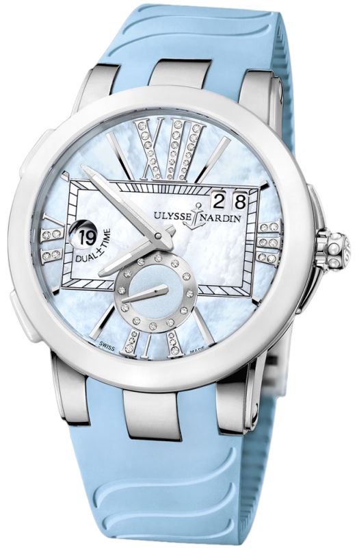 Model: 243-10-3/393 - CASE = [Material:Stainless Steel], [Case Diameter:40], [Case Thickness:12.80mm], [Case Back:See-thru Sapphire crystal], [Water Resistant:50 Meters - 150 Feet], [Crystal:Scratch Resistant Sapphire], DIAL = [Color:Blue Mother of Pearl], MOVEMENT = [Type:Automatic Self Winding], BAND = [Clasp:Push Button Foldover Buckle], [Type:Rubber Pink], (Usually ships in 1 to 2 weeks.)