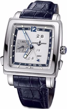 Model: 320-90/61 - CASE = [Material:18kt White Gold], [Case Diameter:42], [Bezel:Fixed], [Case Back:See-thru Sapphire crystal], [Water Resistant:50 Meters/150 Feet], [Crystal:Scratch Resistant Sapphire],; DIAL = [Color:Silver],; MOVEMENT = [Type:Automatic Self Winding],; BAND = [Clasp:Deployment Buckle], [Type:Crocodile Blue Leather], (Usually ships in 2 to 4 business days.)