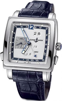 Model: 320-90/61 - CASE = [Material:18kt White Gold], [Case Diameter:42], [Bezel:Fixed], [Case Back:See-thru Sapphire crystal], [Water Resistant:50 Meters/150 Feet], [Crystal:Scratch Resistant Sapphire], DIAL = [Color:Silver], MOVEMENT = [Type:Automatic Self Winding], BAND = [Clasp:Deployment Buckle], [Type:Crocodile Blue Leather], (Usually ships in 2 to 4 business days.)