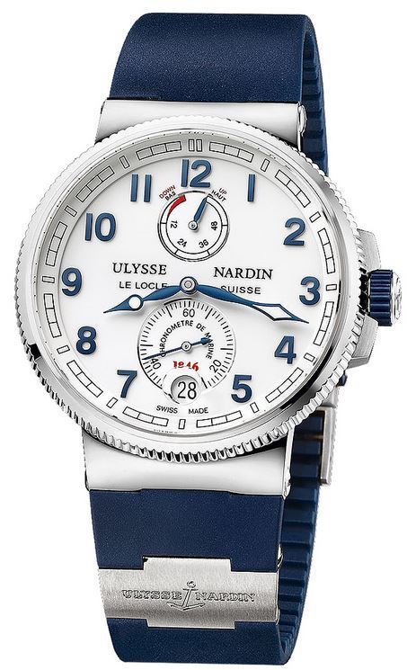 Model: 1183-126-3/60 - CASE = [Material:Stainless Steel], [Case Diameter:43], [Case Thickness:13.85mm], [Bezel:Fixed Stainless Steel], [Case Back:Transparent], [Water Resistant:100 Meters - 330 Feet], [Crystal:Scratch Resistant Sapphire], DIAL = [Color:White], MOVEMENT = [Type:Automatic Self Winding Chronometer], [Crown:Screw Down], BAND = [Clasp:Push Button Foldover], [Type:Blue Rubber], (Usually ships in 1 to 2 weeks.)