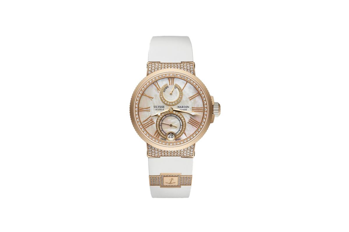 Model: 1182-160C-3C/490 - CASE = [Material:18kt Rose Gold], [Case Diameter:39], [Water Resistant:100 Meters- 330 Feet], [Crystal:Sapphire], DIAL = [Color:White Mother of Pearl Dial Set with 57 Diamonds], MOVEMENT = [Type:Manual Winding], [Crown:Screw Down], BAND = [Type:Rubber Band with 18kt Rose Gold Element Set with 74 Diamonds], (Usually ships in 1 to 2 weeks.)