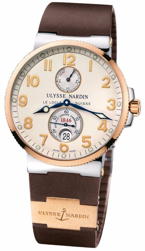 Model: 265-66-3/60 - CASE = [Material:Stainless Steel & Gold], [Case Diameter:41], [Case Thickness:12.5mm], [Case Back:Solid], [Water Resistant:200 Meters - 660 Feet], [Crystal:Scratch Resistant Sapphire],; DIAL = [Color:Off White],; MOVEMENT = [Type:Automatic Self Winding - Chronometer],; BAND = [Clasp:Push Button Foldover Buckle], [Type:Rubber Brown], (Usually ships in 2 to 4 business days.)